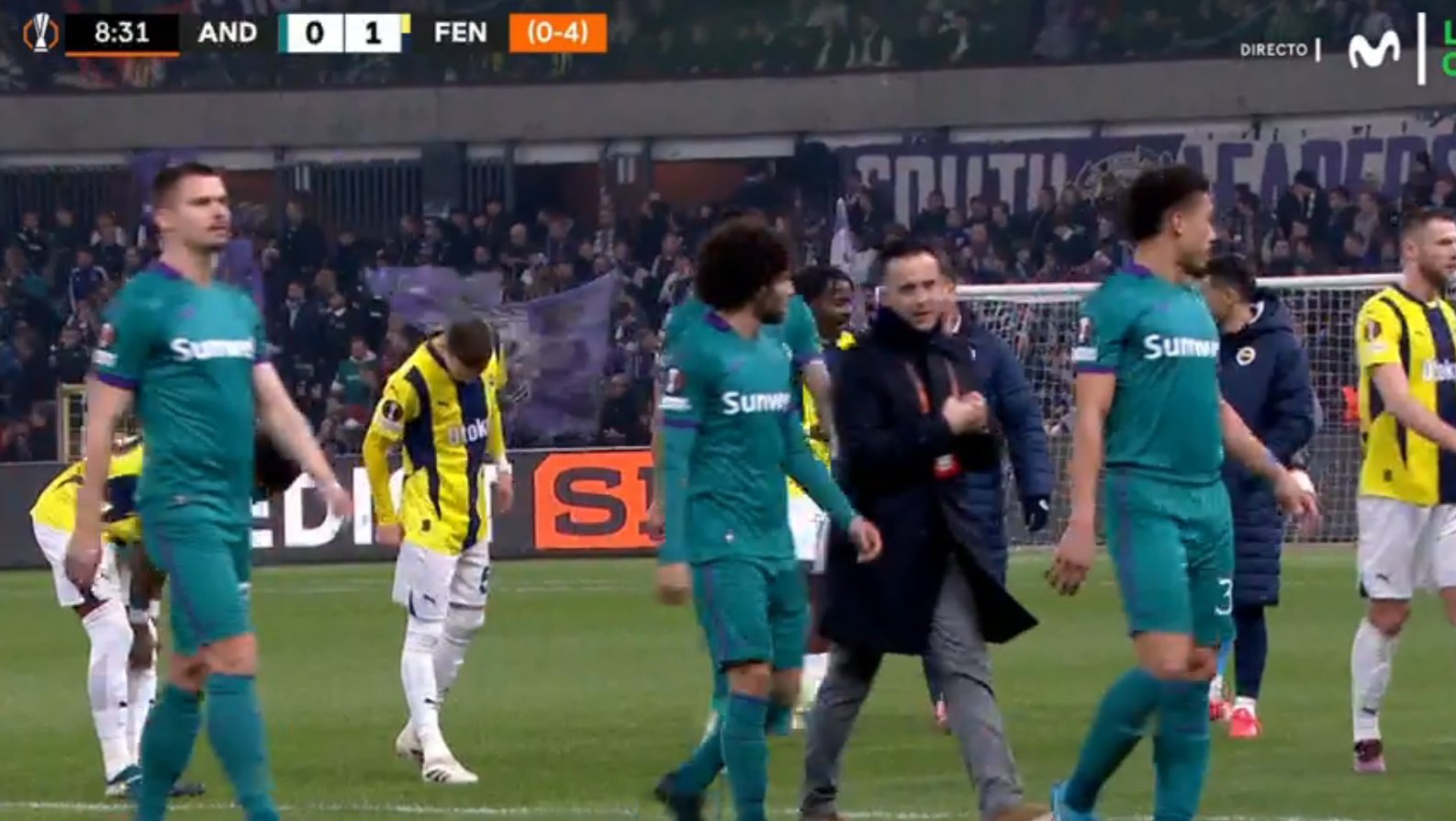 UEFA Avropa Liqasının pley-off mərhələsinin cavab oyunu çərçivəsində baş tutan "Anderlext" - "Fənərbağça" matçının birinci hissəsində fasilə yaranıb.