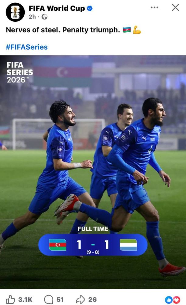 Offsideplus.az xəbər verir ki, bu qələbə FIFA-nın da gözündən kənar qalmayıb.