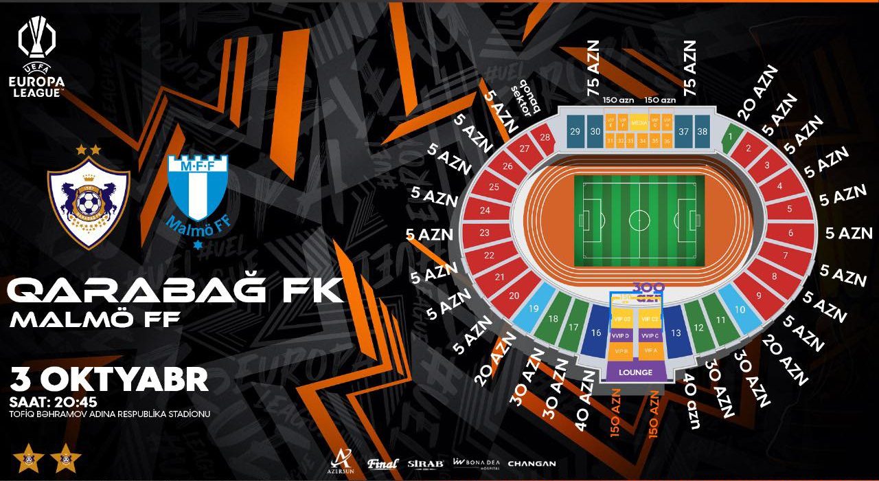 "Qarabağ" - "Malmö" matçının biletləri bu tarixdən satışa çıxır