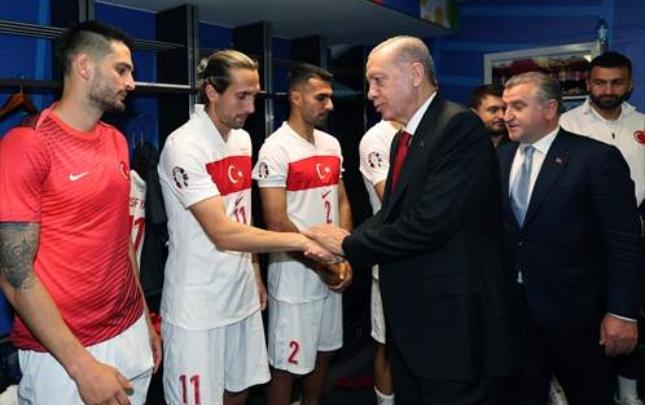 Ərdoğan Türkiyə millisi ilə görüşüb