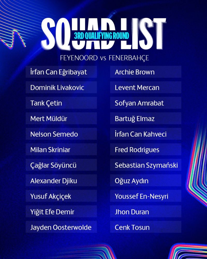 "Fənərbağça" UEFA Çempionlar Liqasında 3-cü təsnifat mərhələsində "Feyenoord" ilə qarşılaşacaq.