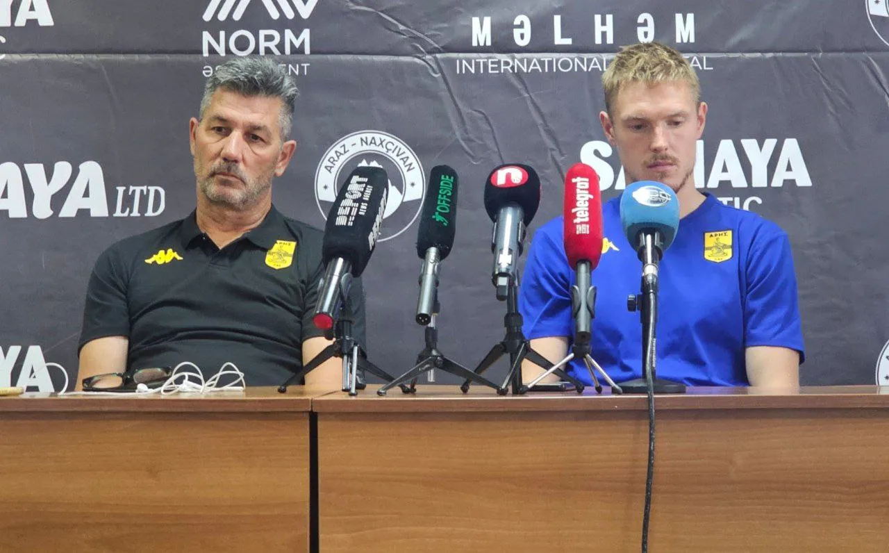 "Araz-Naxçıvan"a qarşı UEFA Konfrans Liqasının II təsnifat mərhələsi matçından əvvəl "Aris"in baş məşqçisi Marinos Uzunidis Bakıda mətbuat konfransında iştirak edib.