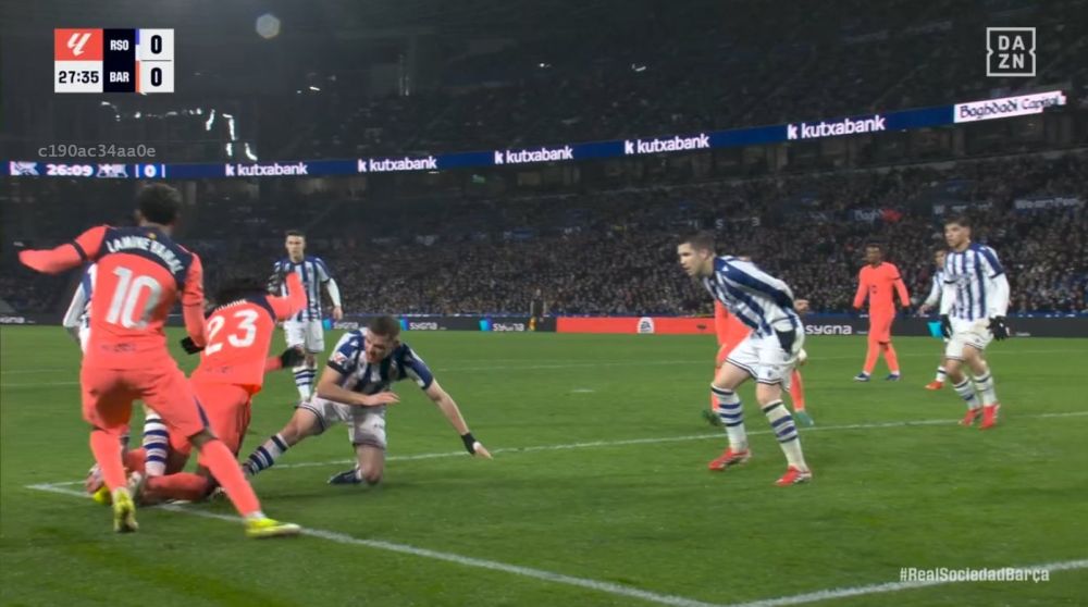 Offsideplus.az xəbər verir ki, VAR tərəfindən istifadə olunan kadr Jül Kundenin ilk toxunuşu ilə üst-üstə düşmür. Həmin anda Lamin Yamalın ayağı açıq şəkildə yerə basılı vəziyyətdə olub və ofsayd mövqeyi görünmür.